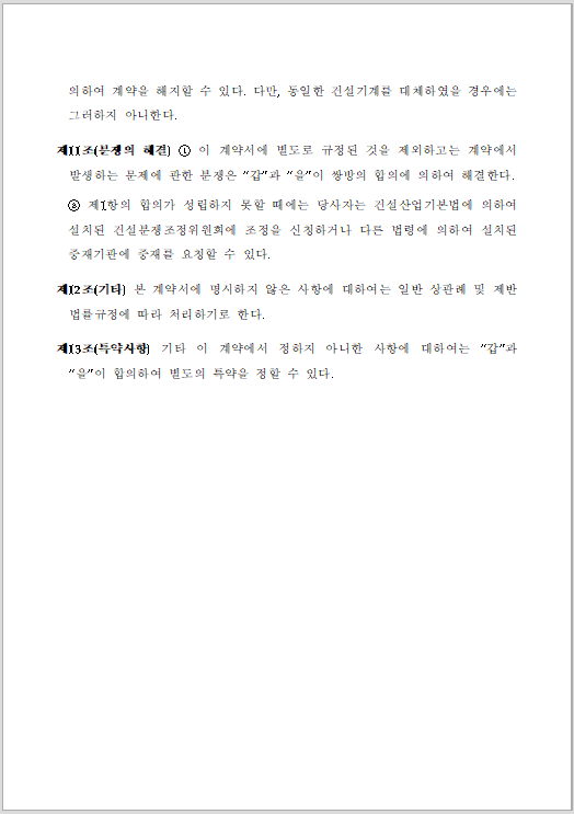 아래 파일을 올려 두니 건설기계 임대차 표준 계약서 양식 받아서 이용하시기 바랍니다.