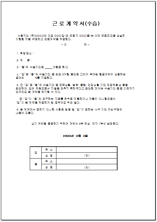 그래서 수습기간 근로계약서 양식 서식 공유해봅니다.