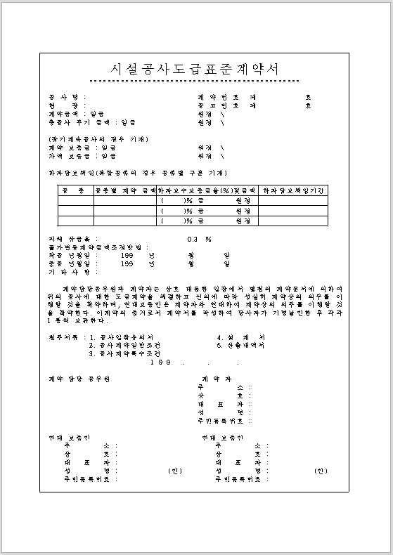 1. 시설 공사 도급 계약서 양식 다운로드