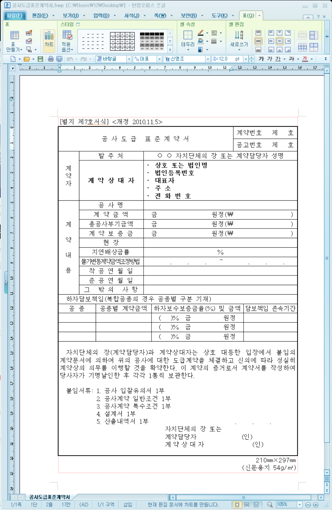 공사 도급 표준계약서 양식