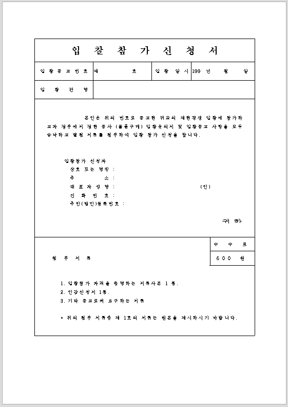 오늘은 입찰 참가 신청서 양식을 공유해 보려고 합니다