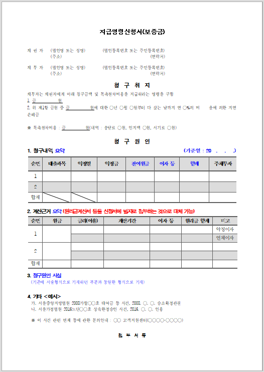 지급 명령 신청서 양식 작성 방법 무료 공유